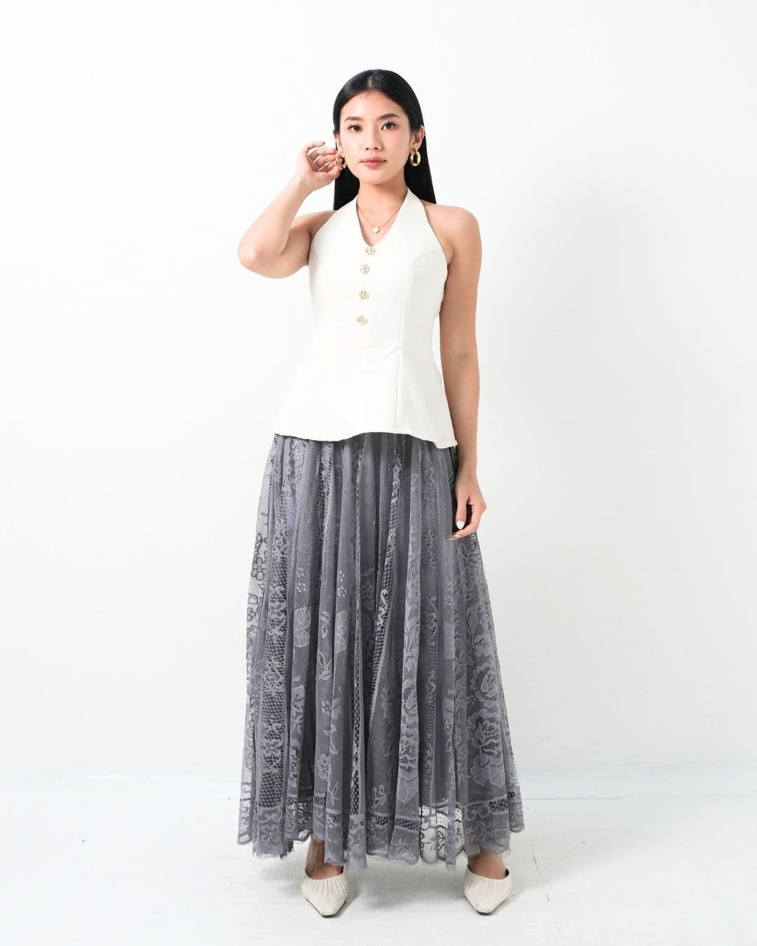 Skirt tulle semi formal ini akan nambah looks kamu menjadi sangat cantik saat menggunakannya. Untuk menghadiri undangan para client, Brenda membuat looks mu menjadi stunning ditengah-tengah undangan yang ada.