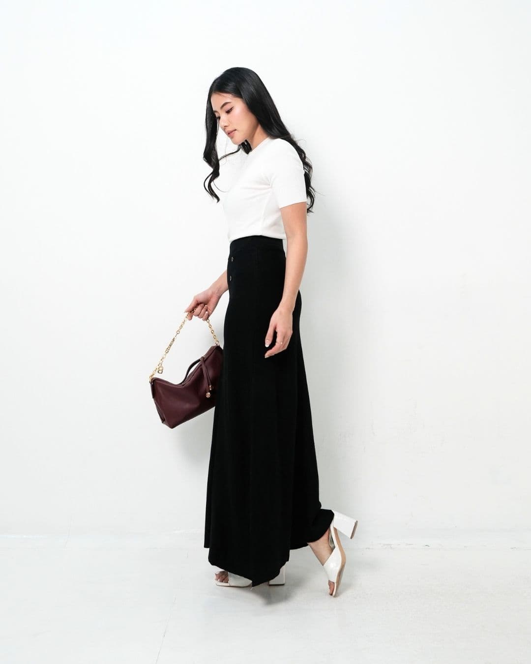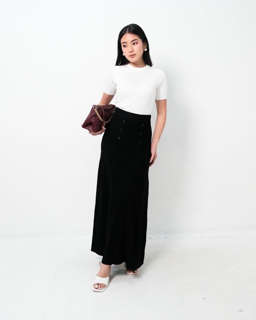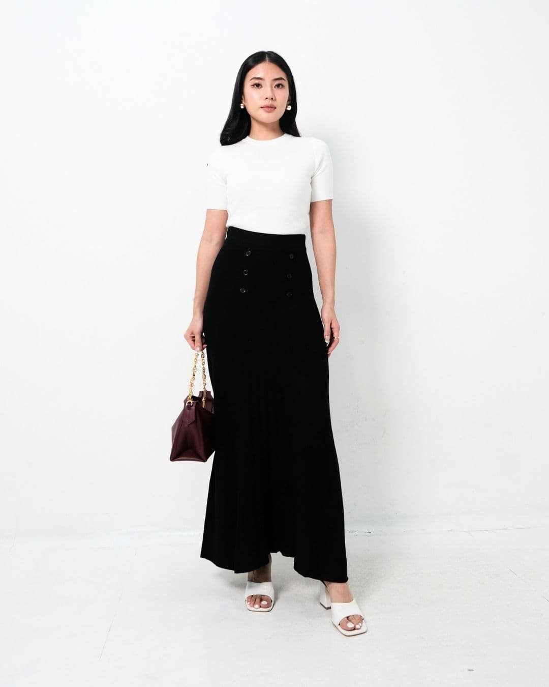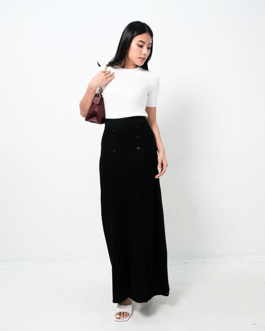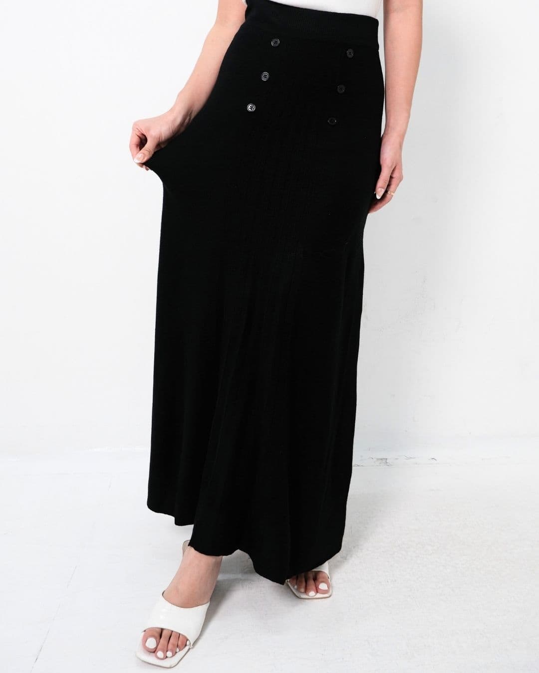 Isyana Long Flared Knit Skirt (Black)