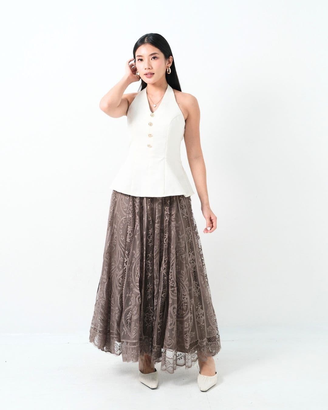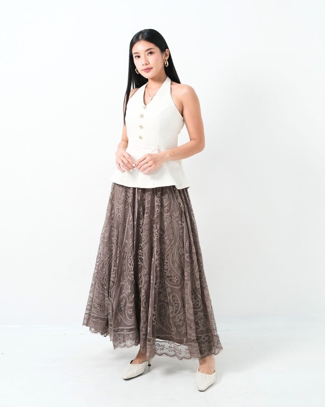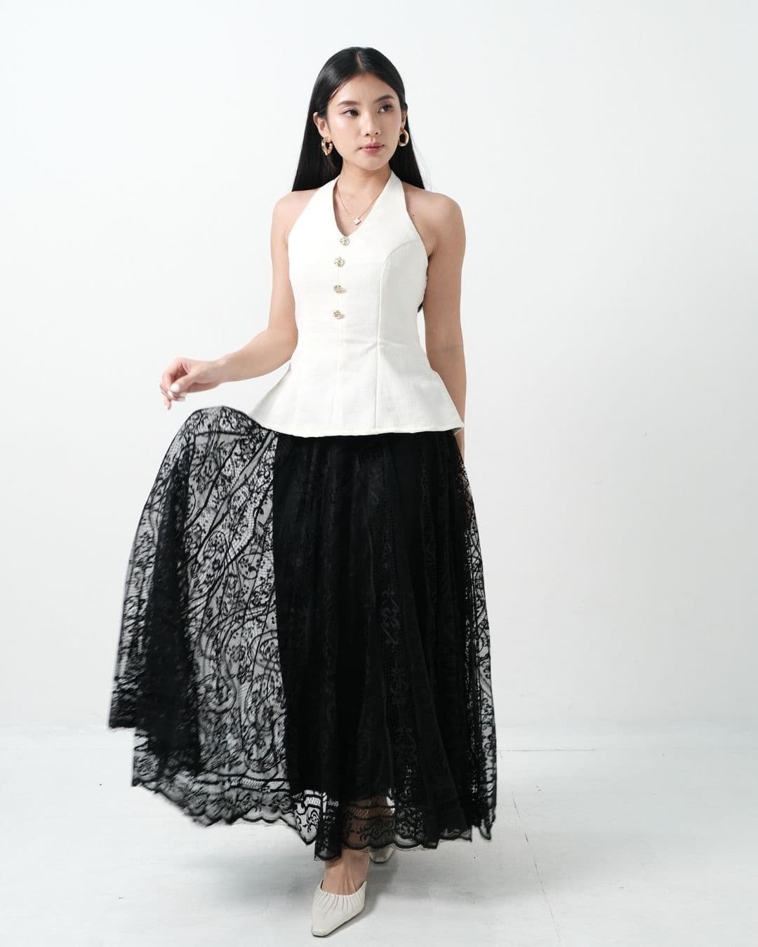 Rok panjang ini memberikan kesan anggun dan mewah. Terbuat dari tulle yang dihiasi dengan corak cantik, rok ini memberikan sentuhan elegan untuk setiap penampilan. Desain flowy-nya cocok untuk berbagai acara, menjadikannya pilihan sempurna untuk koleksi di toko kamu!
