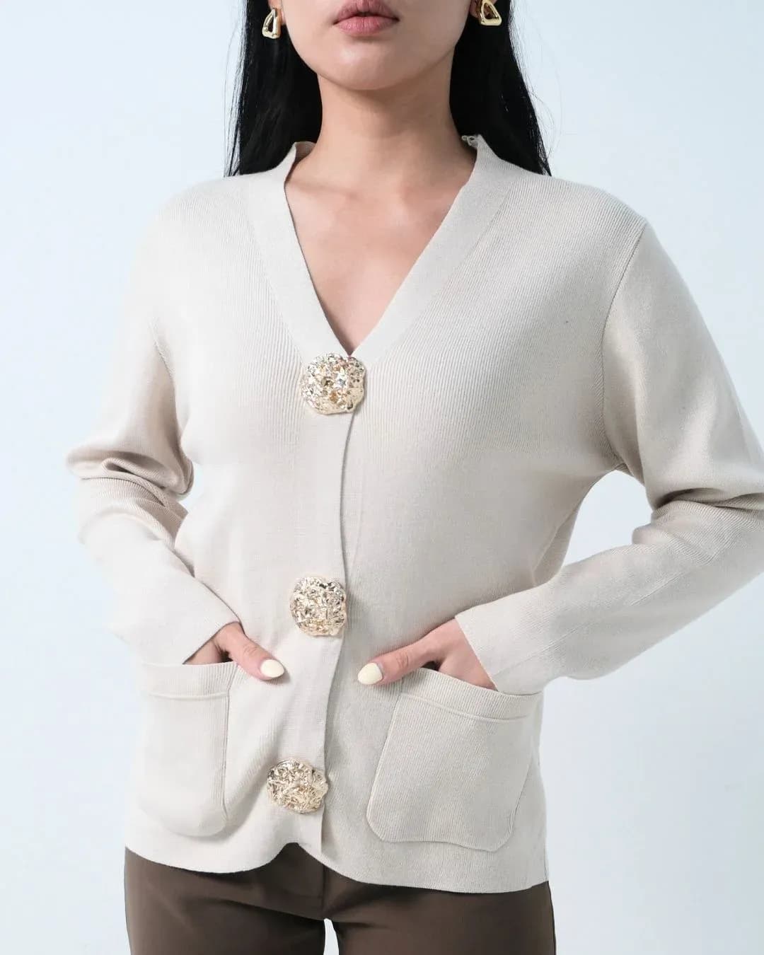 Ashta Embossed Buttons Cardi