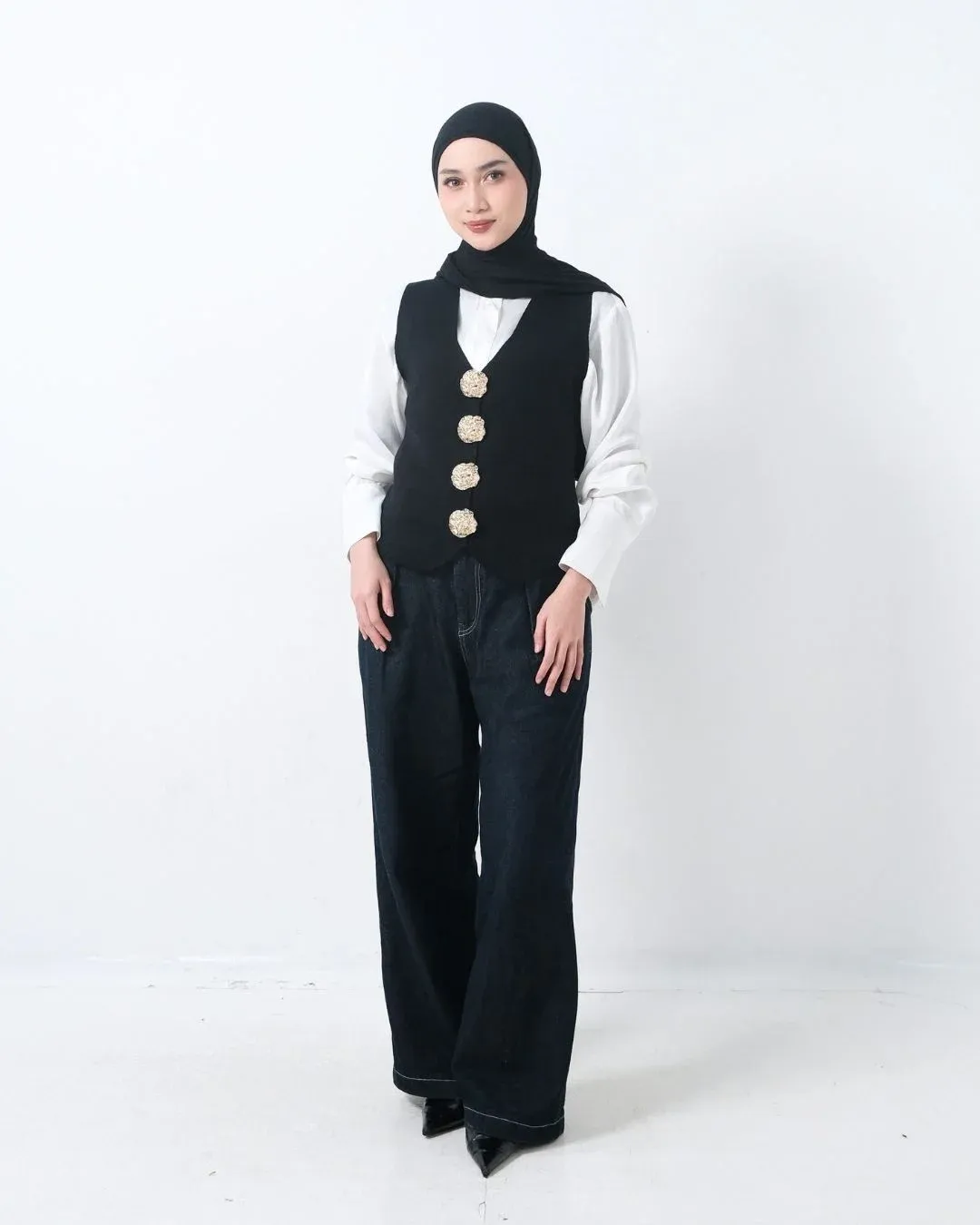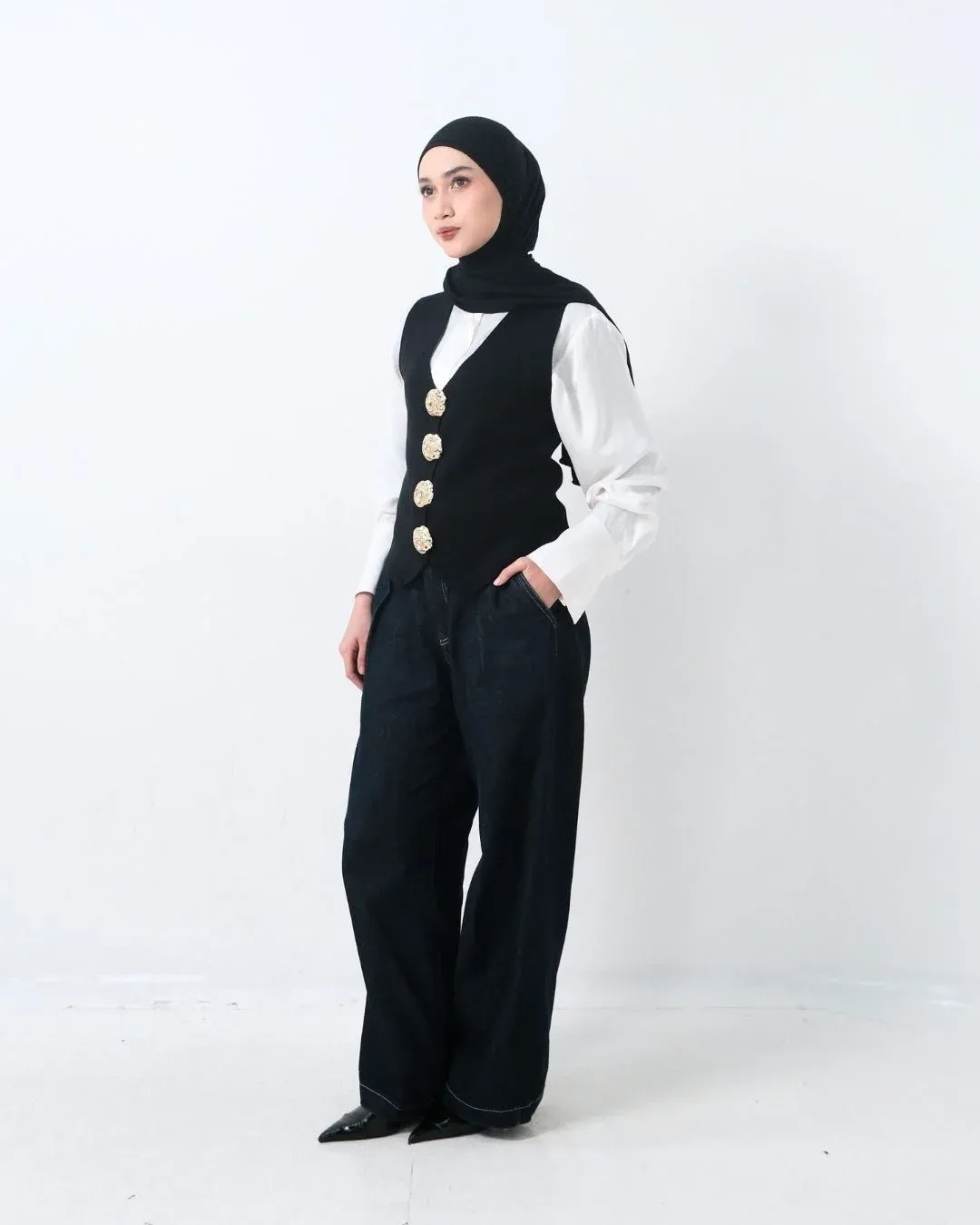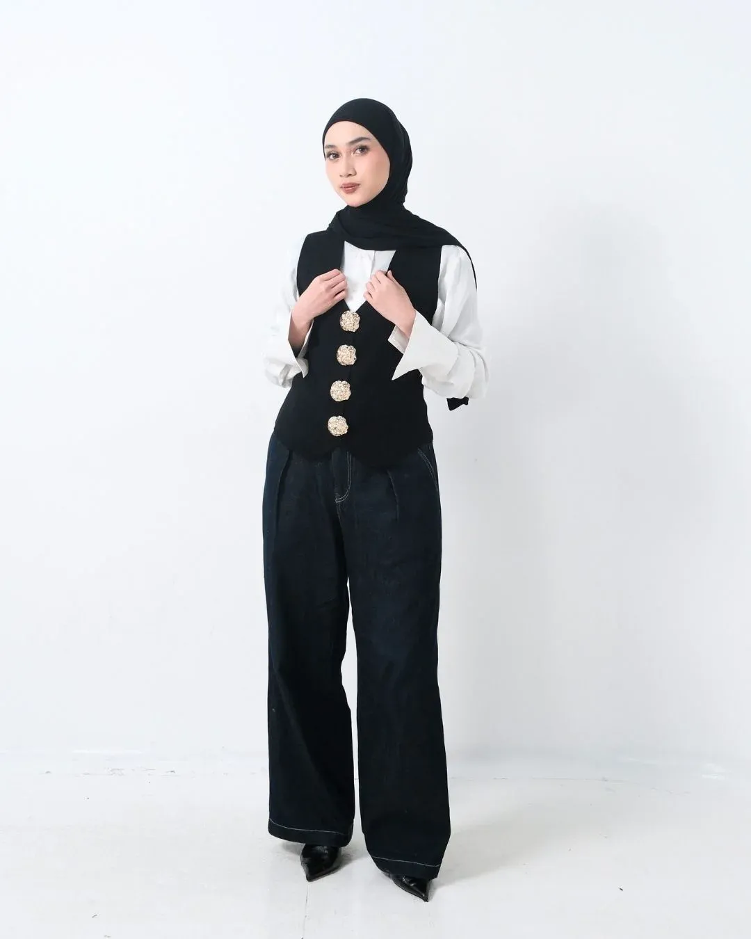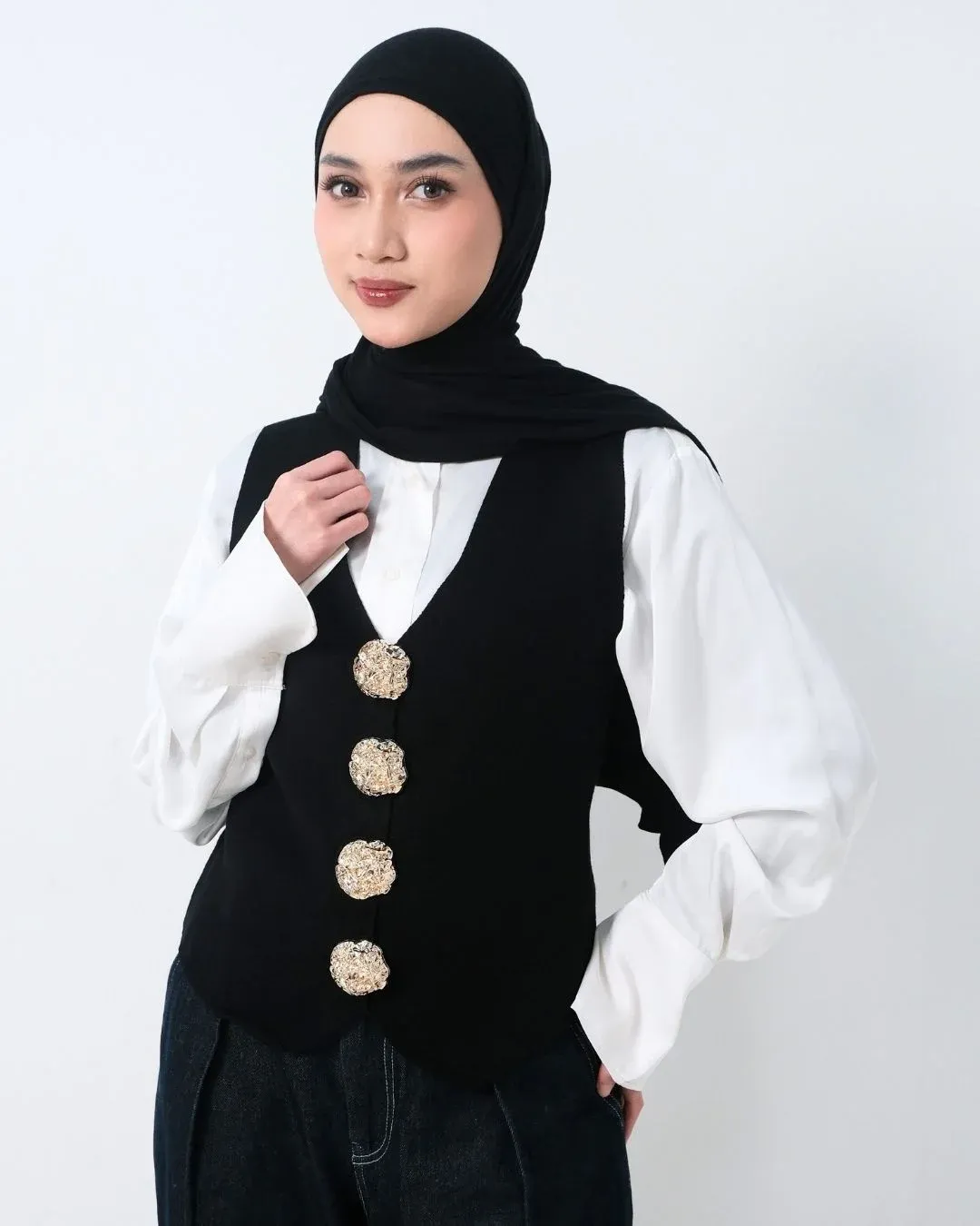 Claira Embossed Buttons Vest (Special Black)