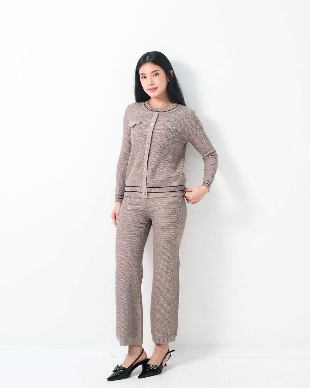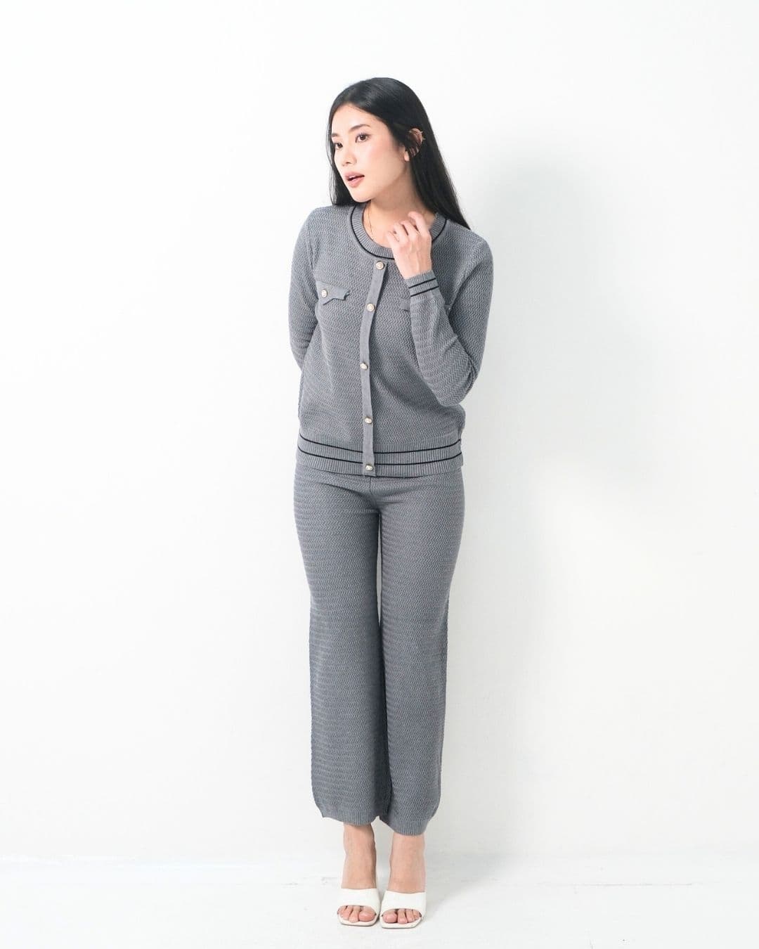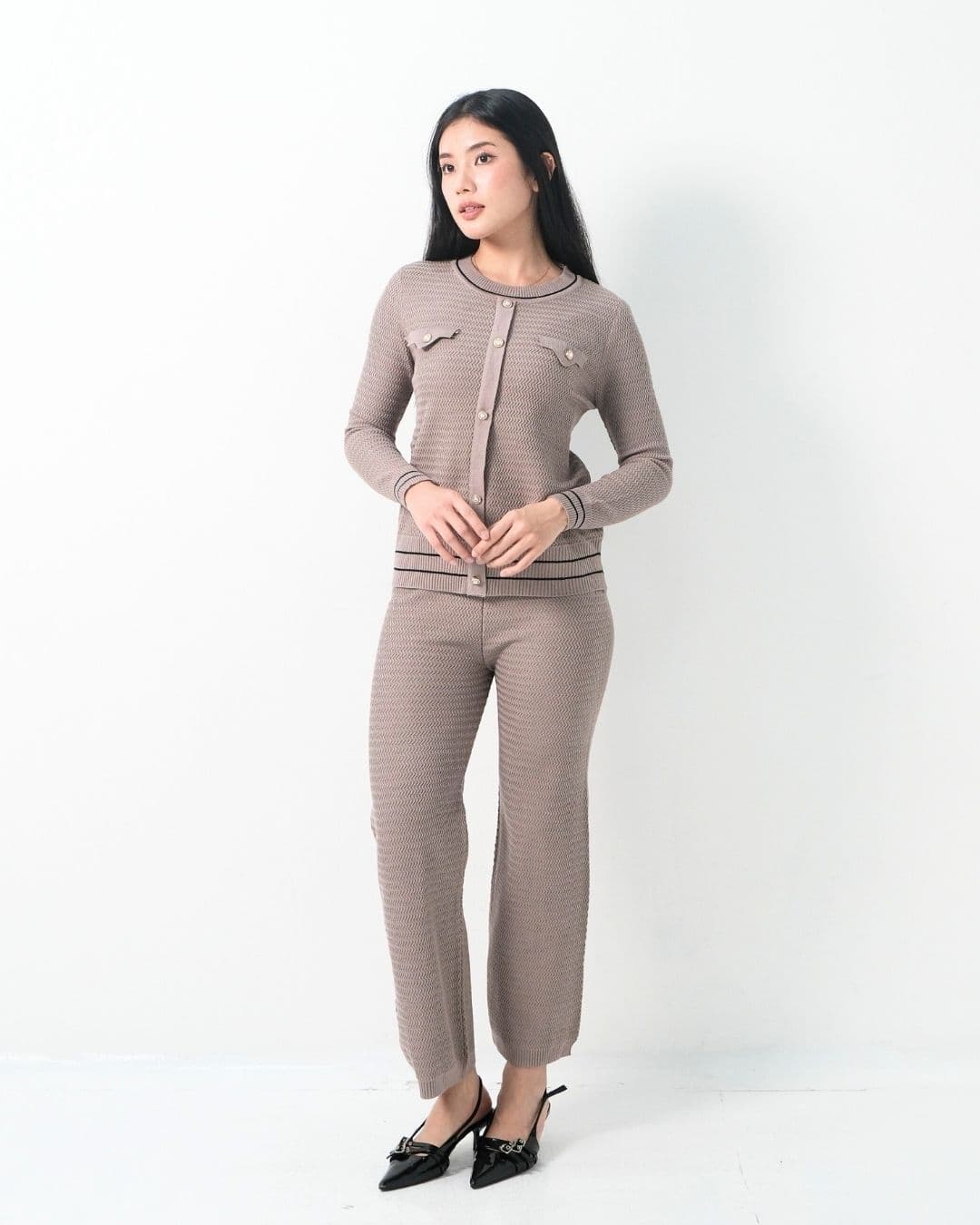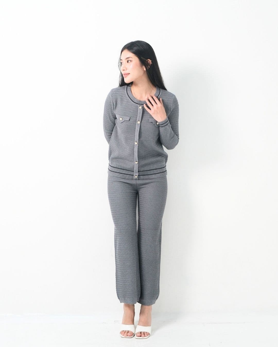 Norella Texture Classy O Neck Cullote Set