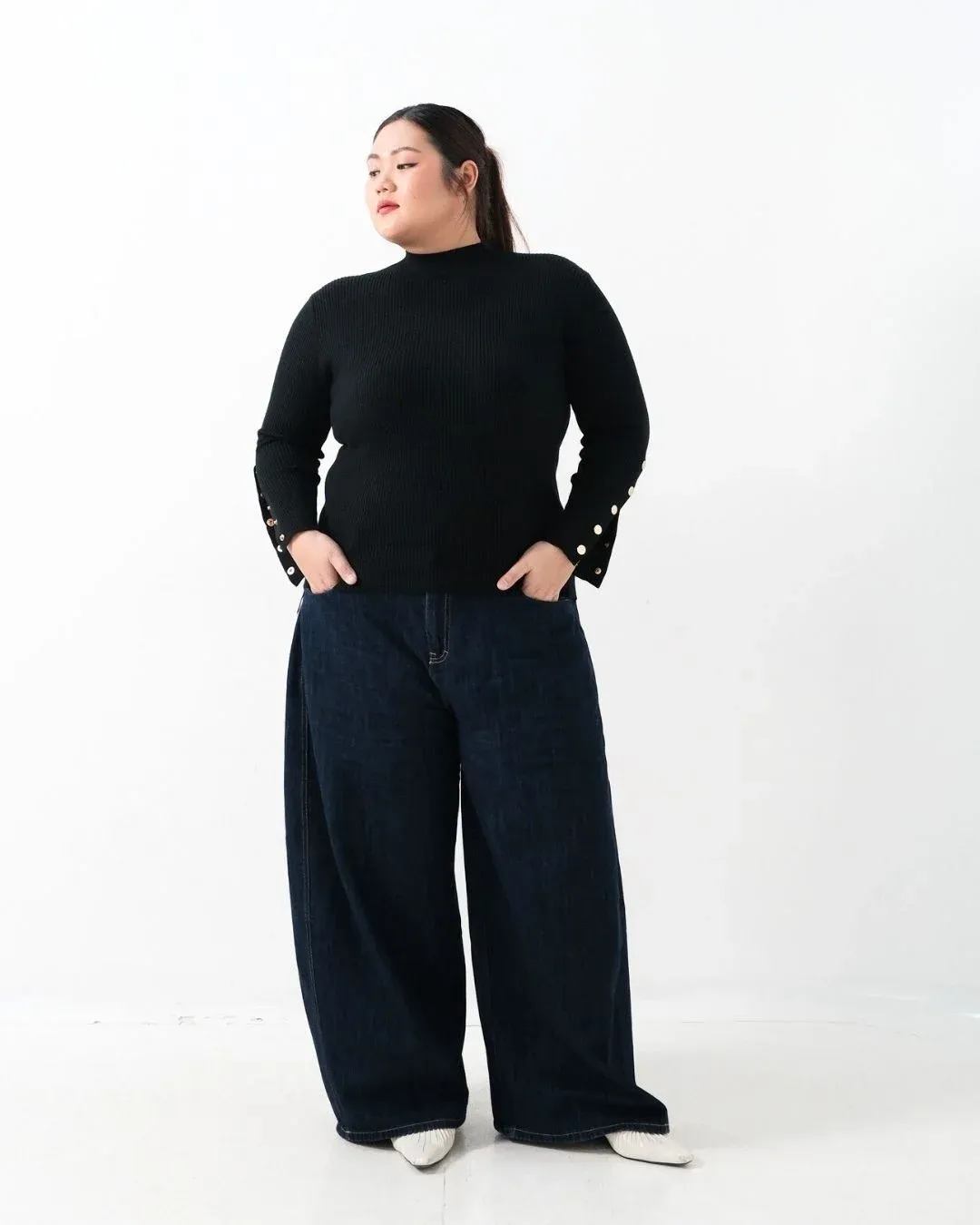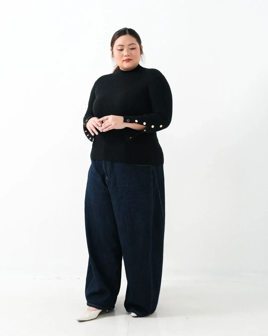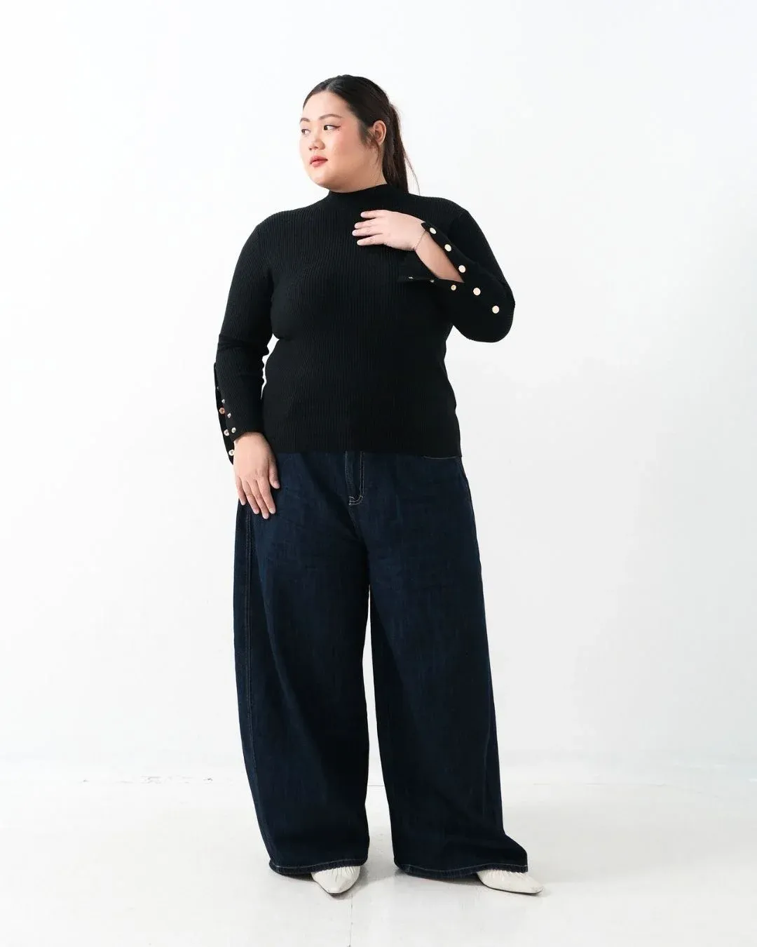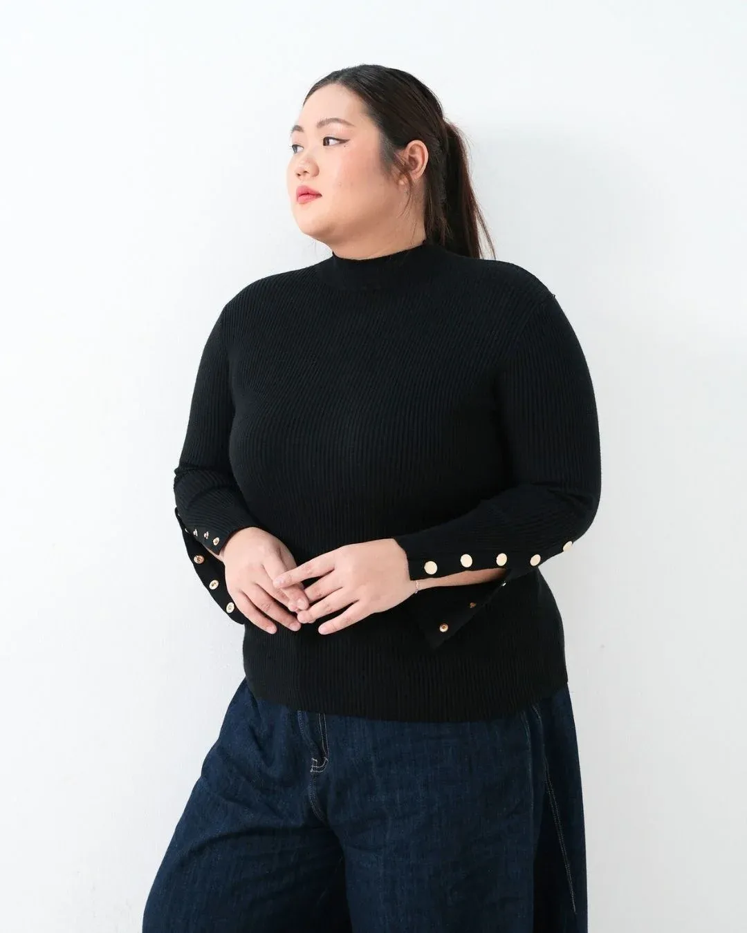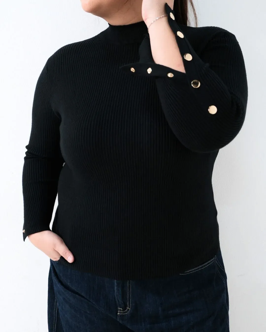 Donna Long Sleeve Oversized Knit Top (Special Black)